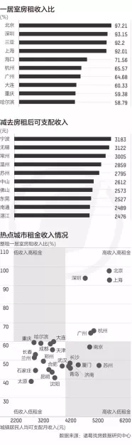 此处所指房租为2019年4月数据,收入则来源于统计局公布的2018年城镇居民人均收入。