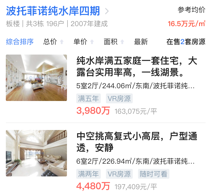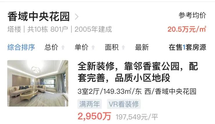 贝壳上香蜜湖老牌豪宅目前挂牌价