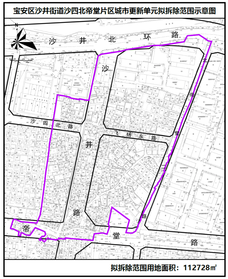 沙四北帝堂片区城市更新项目位于宝安区沙井街道,项目拟拆除范围用地面积112728㎡,拟更新方向为二类居住用地(R2)等功能。拟拆除重建用地范围内落实不少于51806.1㎡公共利益用地(含教育设施用地绿地、道路等)。