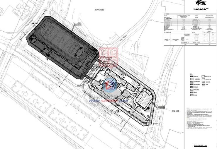 依据用地分宗情况调整宗地范围线。将运动场东侧下沉广场内的两部楼梯整体右移0.85米。根据设计深化及分宗后规划设计要点批复,对经济技术指标表进行调整:
