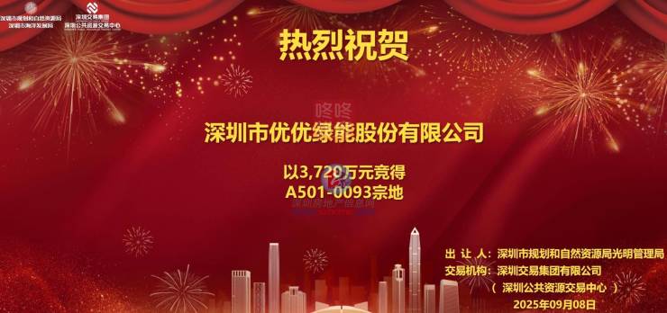 近日,光明凤凰一宗工业用地由深圳市优优绿能股份有限公司以底价3720万元竞得。