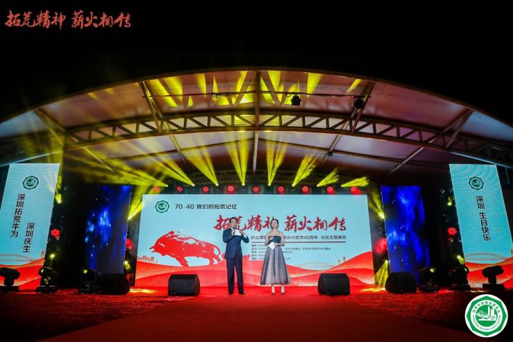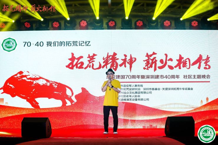 9月1日晚上,在深圳竹子林竹盛花园社区广场成功举办了“70•40 我们的拓荒记忆”之“拓荒精神,薪火相传”庆祝建国70周年暨深圳建市40周年社区主题晚会,数百位拓荒牛与社区居民一起为深圳成为中国特色社会主义先行示范区献上真挚祝福。此次晚会是在深圳市退役军人事务局指导下,由深圳市拓荒史研究会、深圳市慈善会·关爱深圳拓荒牛专项基金主办,深圳市越众文化集团有限公司承办,并获得了深圳波峰演艺设备有限公司赞助,香岭社区老年人协会、香蜜湖街道竹林社区党委、香蜜湖街道竹林社区工作站等友情支持。