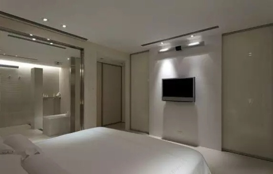 这可不只是一面电视墙,它还是隐藏衣帽间的房门,视觉上非常干净简洁。而且它直接连接着浴室卧室,冲澡和换衣可以连贯完成,非常方便。房子大,就能在结构布局上玩出更多花样,让衣帽间成为你的私密空间。
