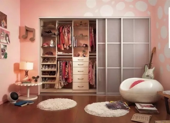 最简单的就是专门用一间房间来做衣帽间。衣柜、鞋柜、首饰柜、落地穿衣镜和小沙发合理摆放,虽然做不到《小时代》顾里家那种规模,但也足够让你活得精致。