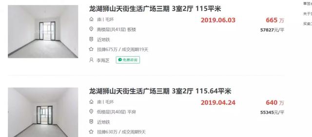 同样的户型,去年成交的房源总价也要665万。