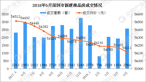 中商情报网讯:据了解,2018年5月深圳市新房成交价格54111元,环比下跌58元,同比下跌401元;从成交套数来看,5月深圳市新房成交为2564套,环比上涨了630套,与去年同期相比增加了10.9%。由于深圳针对新房出台限价令,导致一二手房价倒挂,此外,二手房实行“三价合一”,购房者更加青睐新房。另外,粤港澳大湾区规划呼之欲出,政策利好深圳楼市。深圳实行摇号买房,购房交易更加公平,利益驱使下,预计未来购房人群将涌入新房市场,新房成交量有所增长。
