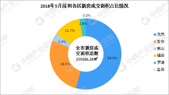 5月深圳各区新房成交面积情况:5月深圳市新房成交面积为25.93万㎡,其中龙岗区新房成交面积较大,占比为54.5%,占深圳市新房成交面积超五成,成交面积排名第二的是宝安区,占比为26.6%,占比超深圳新房成交面积低于三成。其次是福田区和南山区,占比分别是12.7%和3.4%。