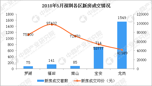 5月深圳各区新房成交套数和成交均价情况:
