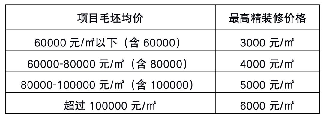 原则上,精装修项目价格核定需按照工程造价方法进行核算,由区造价部门或第三方评估机构进行审核。精装修价格梯度区间如下: