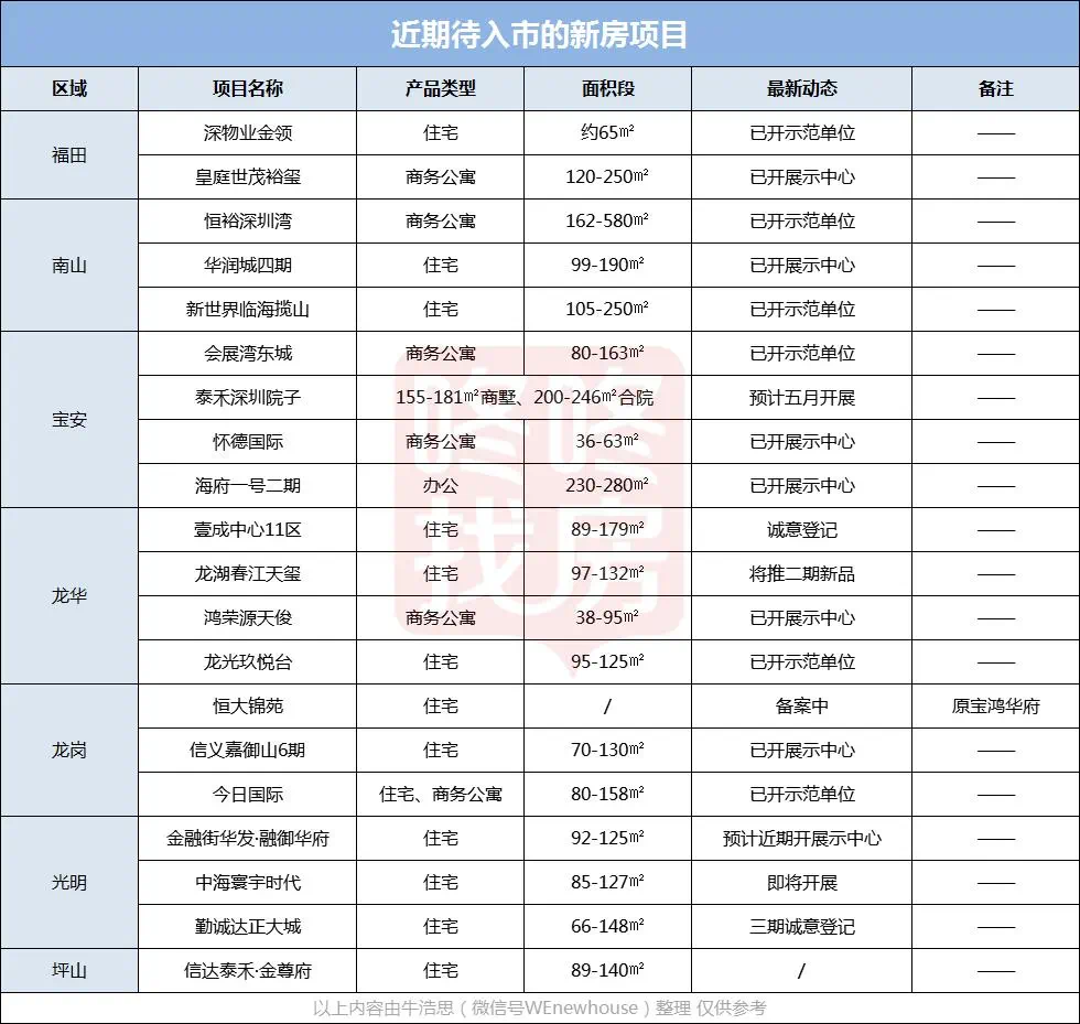 本期,老牛依然为大家带来深圳较新的新房楼市动态。