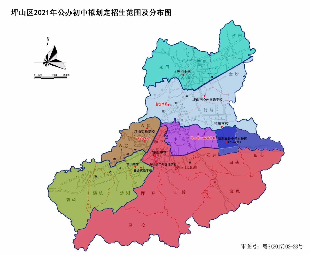 (三)中山中学:碧岭社区,汤坑社区,沙湖社区,六联社区金碧路以南、东纵路以西及锦龙大道以东片区,坪环社区比亚迪路以南、体育三路以西及大山陂水库管理线以北片区。(注:洋母帐片区申请初中学位取消共享划为中山中学招生范围,中山中学与新合实验学校初中部组成大学区招生)