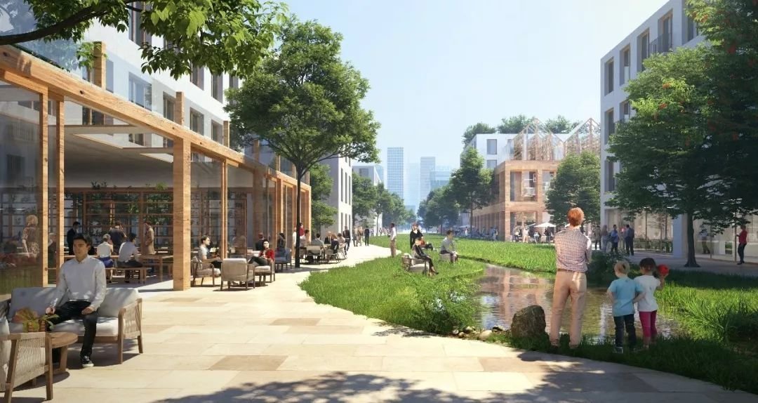 城市设计注重以人为服务主体,适当借鉴欧洲人性化尺度街区营造经验,以高品质的宜居生活为导向,将山湖自然景观引入城区内部,通过各层级的社区公园、雨水公园营造绿色生机的居住生活环境。