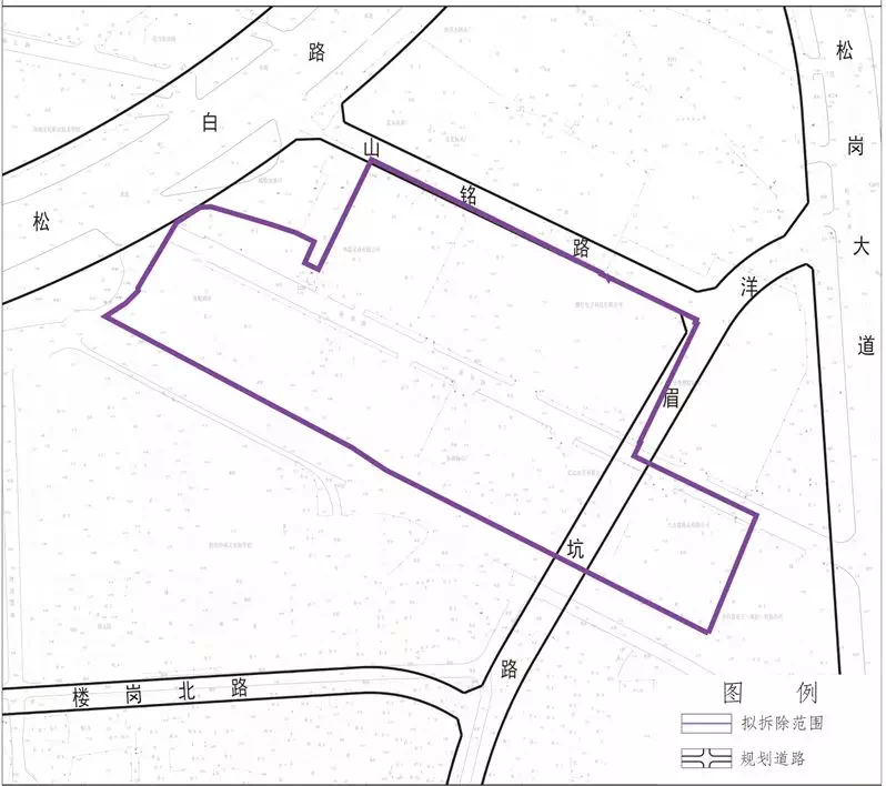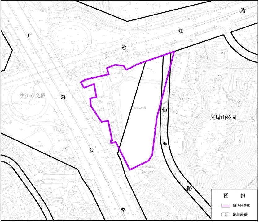 宝安区松岗街道107发展带山美后塘工业区城市更新单元(原名:宝安区松岗街道松宝大家私城城市更新单元)位于宝安区松岗街道广深公路与沙江路交汇处东南侧,拟拆除范围用地面积22268㎡。