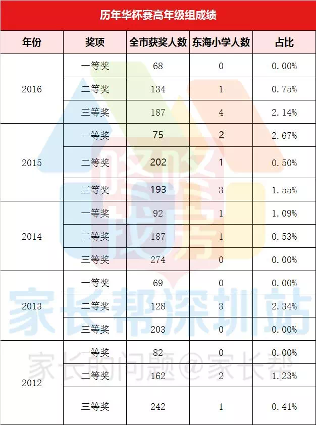 ▲东海附属小学往年华杯赛的成绩