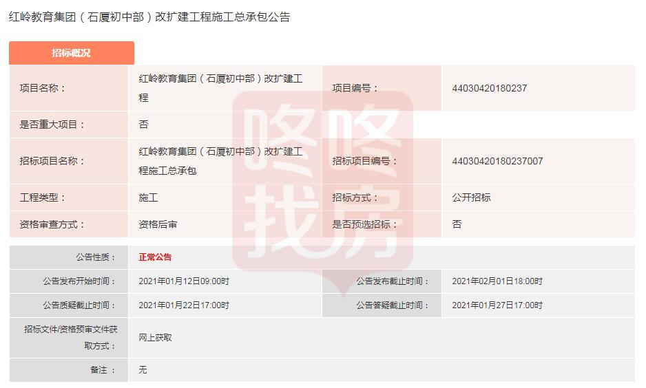 1月12日,深圳住建局发布红岭教育集团(石厦初中部)改扩建工程。