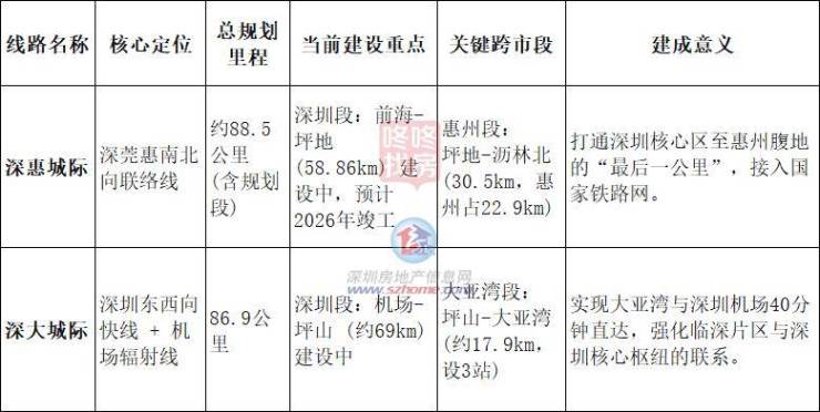 按照计划,深惠城际(前海保税区至坪地段)预计在2026年11月竣工。