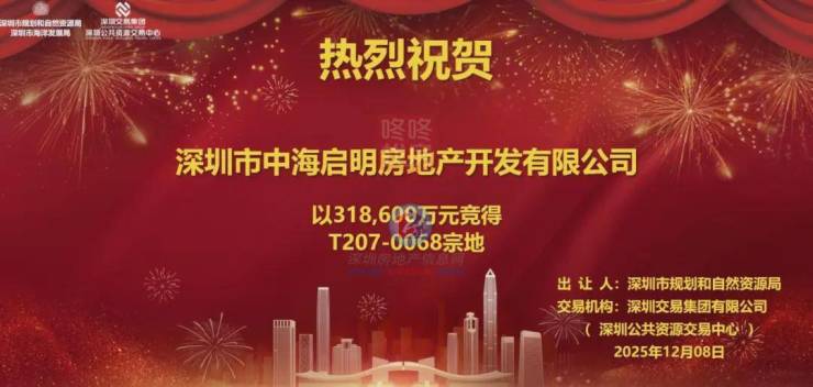 该地块占地紧邻深湾玖序项目,挂牌起始价约22.36亿元;最终,中海以31.86亿竞得该地块,溢价率42.49%,成交楼面价77360元/㎡。