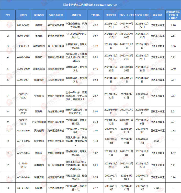 根据清单显示,目前深圳还剩余15个可售型人才住房、14个安居型商品房、4个共有产权住房待入市。