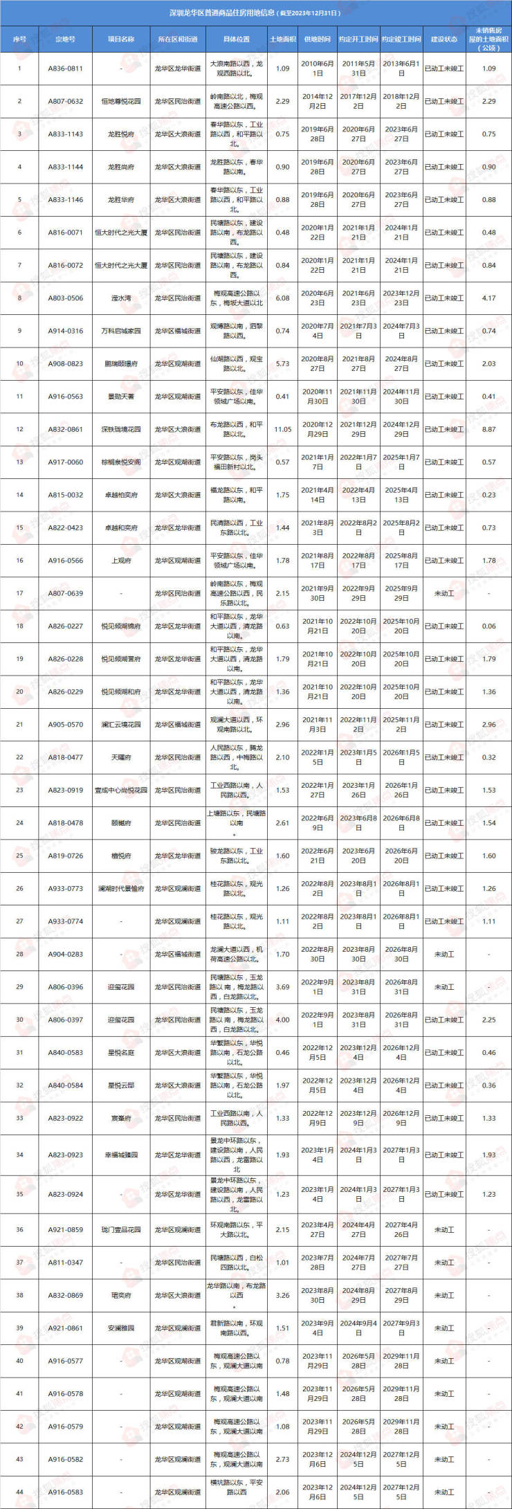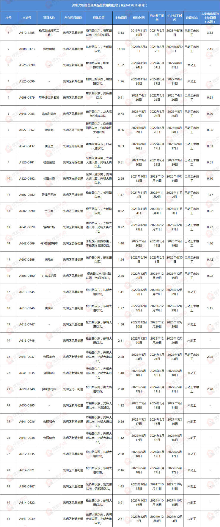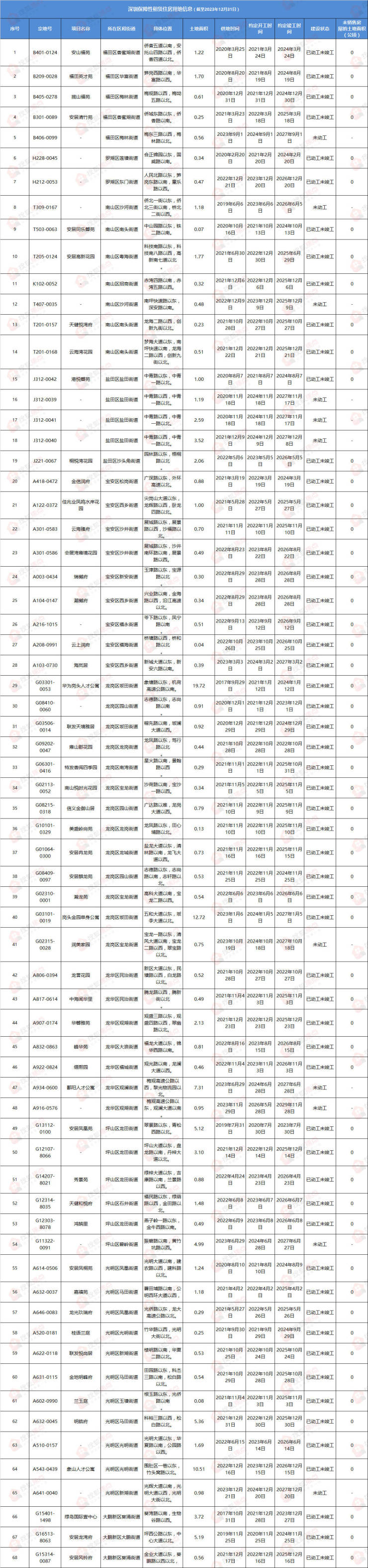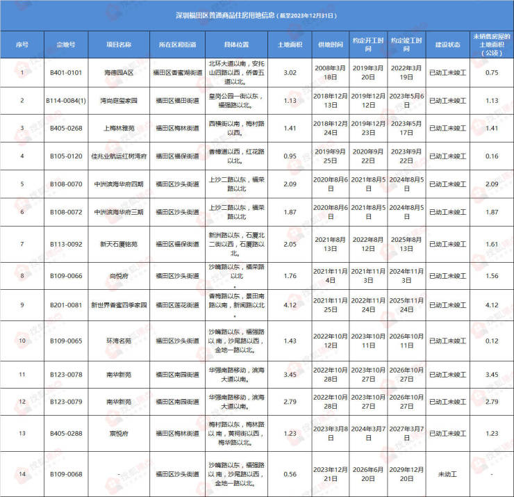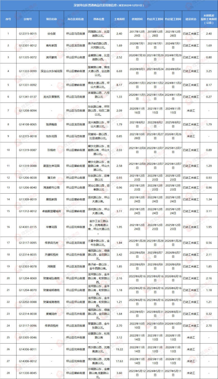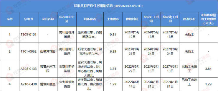 1月10日,深圳市规划和自然资源局发布了“深圳市存量住宅用地”清单,该统计数据截至2023年12月31日。