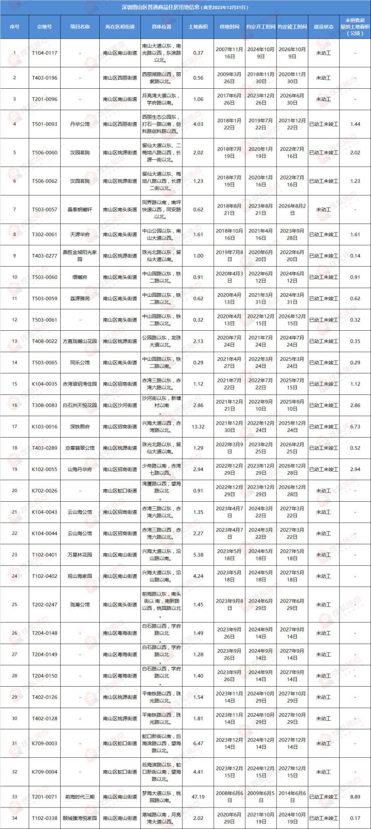 从供应端的角度来看,“未动工”及“已动工未销售”的部分,就是后续将面向市场推出的房源,所以下面我们重点来捋一捋,这部分房源都有哪些。