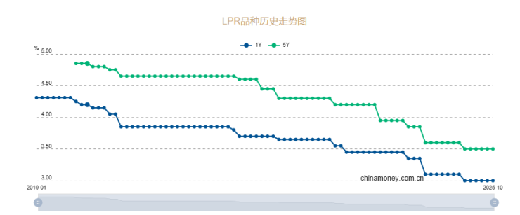 中国人民银行授权全国银行间同业拆借中心公布,2025年10月20日贷款市场报价利率(LPR)为:1年期LPR为3.0%,5年期以上LPR为3.5%。以上LPR在下一次发布LPR之前有效。