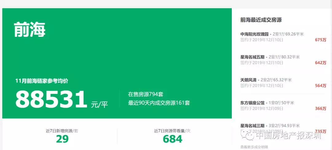同时,前海二手房涨幅也较为靠前,部分房源去年挂盘价格在8.5万元/㎡左右,今年普遍达到了9万-10万元/㎡。购房者张东(化名)近期在前海片区物色合适的房源,他发现,很多前海南片区的房子早已窜到了10万元/㎡以上,在张东物色的该小区,链家的挂盘均价已达99788元/㎡,一套66.4㎡的2房,挂盘价格为730万元,挂盘单价超过了10万元/㎡。张东表示,去年看这个房,均价也才8万多元,如今不到一年,每平方米涨了1万多元,张东表示,目前深圳整个片区都在上涨,如今在南山、福田片区800万元也能选到各方面合适的3房了。据深圳中原研究中心数据显示,今年跟涨区域的宝安,二手房均价达到了60336元/㎡,环比上升3.5%,涨幅仅次于南山区。