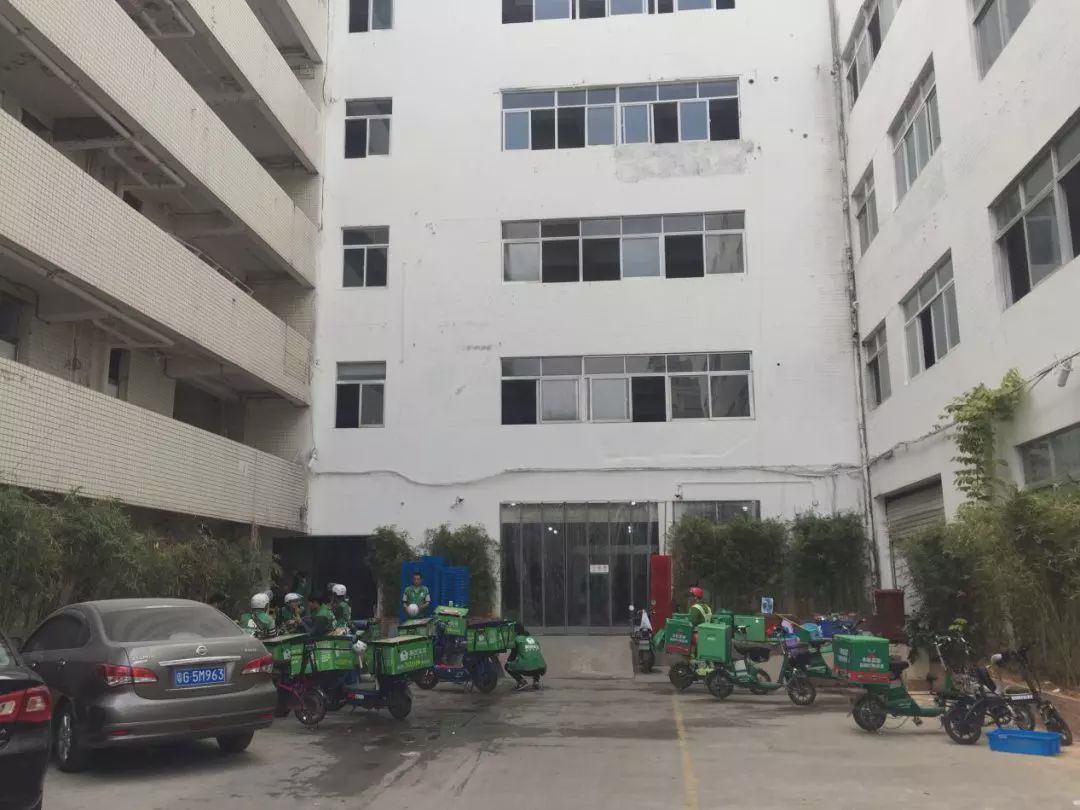 现在仍是厂房宿舍的外表,紧邻旁边的似乎是叮咚买菜的仓库,门口堆着菜篮子,多个骑手停留休憩。