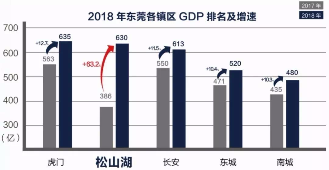 2018年,松山湖GDP突破630亿,一举改变长期以来虎门、长安“双雄争霸”的格局,63%的GDP增速是其他镇区的五倍之多。经济与房价存在着互惠的关系,自古GDP强的地方房价都不会便宜,经济的发展是房价最有力的支撑。