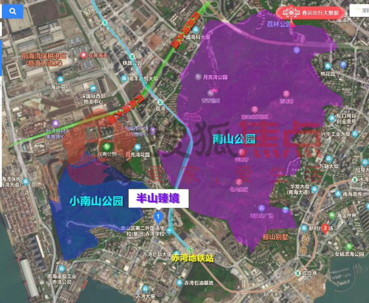 距离半山臻境3公里范围内还是有几个公园的,其中最近的赤湾公园仅800米。并且半山臻境左手小南山,右手大南山,自然景观资源丰富。且半山臻境周边已有山语海、港湾生活、前海丹华、山海逸居等品质住宅小区,居住氛围浓厚,居住适宜感强。