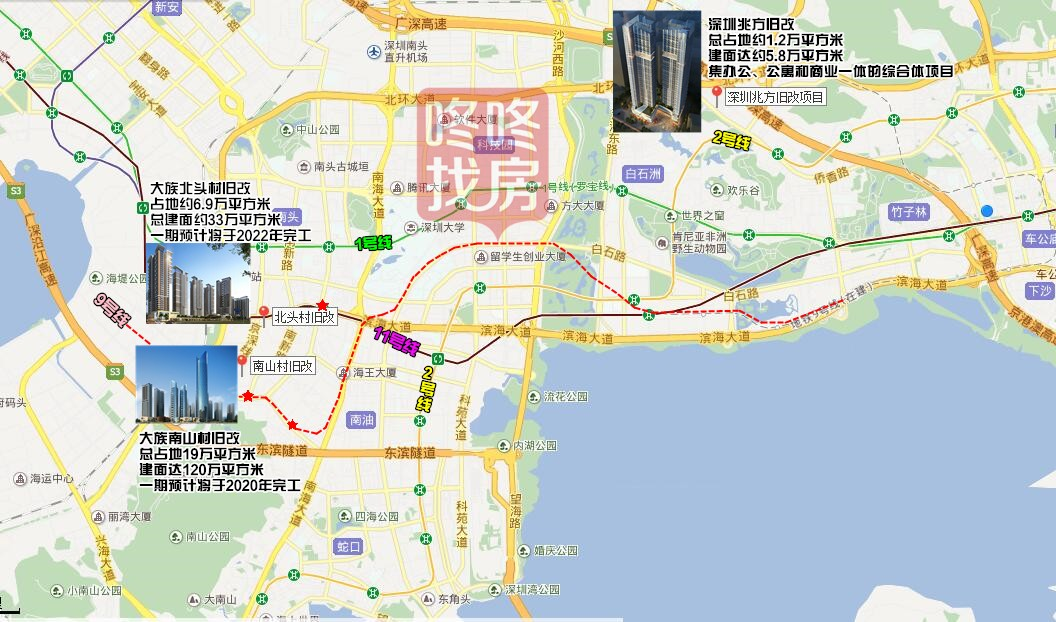 附近还有恒大丁头村、恒大向南村、大族南山村等一系列大型旧改项目,未来片区整体样貌都会得到提升,只是目前这几个项目几乎毫无动静,只有北头村先人一步。