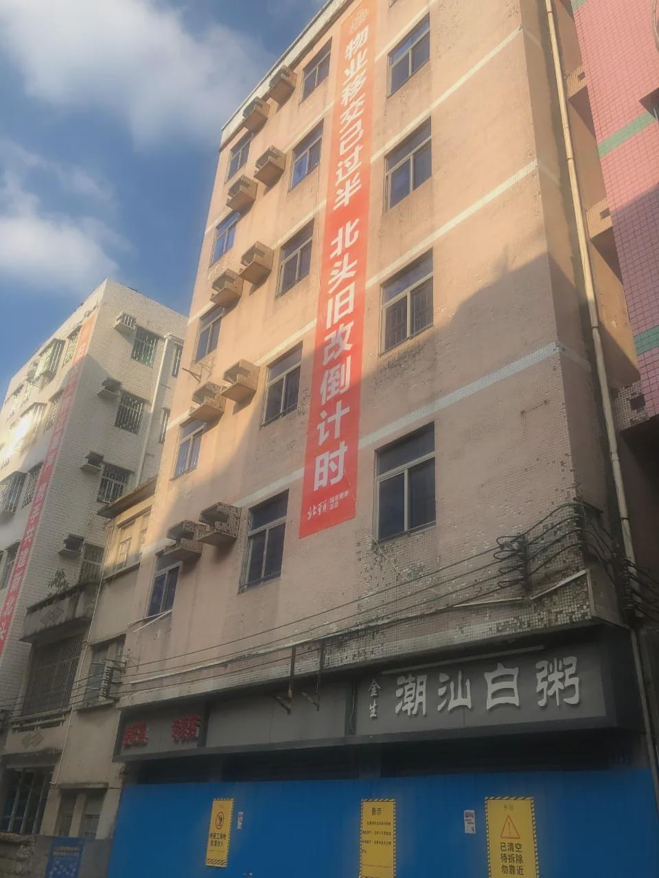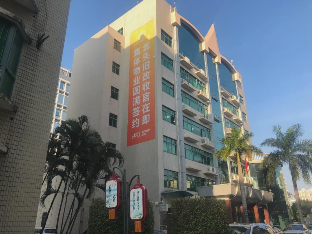 而北头豪苑的楼龄还算比较新,2002年建成,属于集资房,已经全部签约,在北头实业股份有限公司总部大楼的侧边赫然挂着“北头旧改收官在即”的海报。
