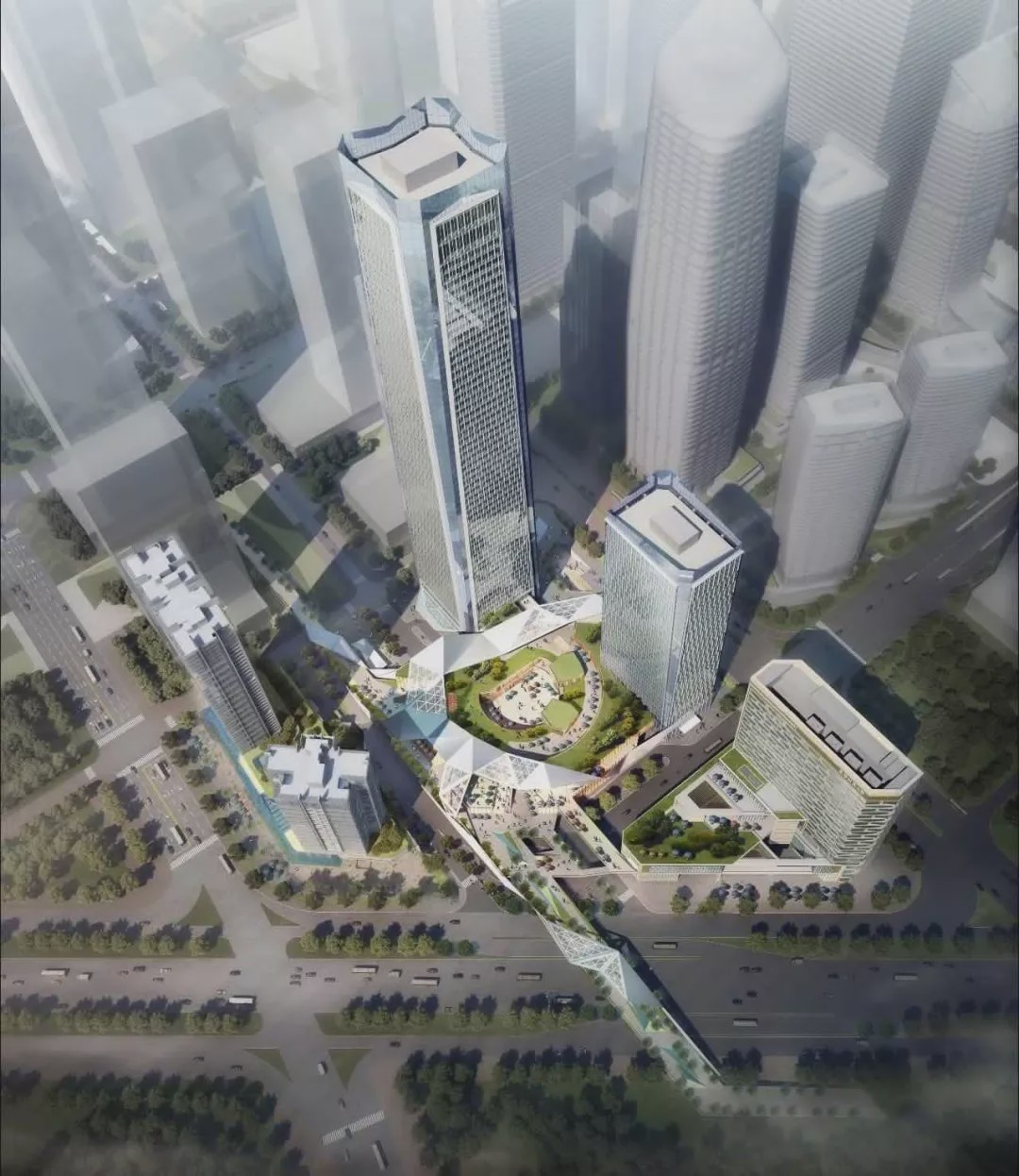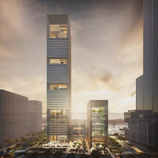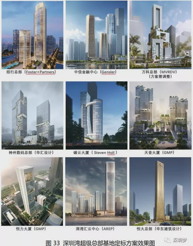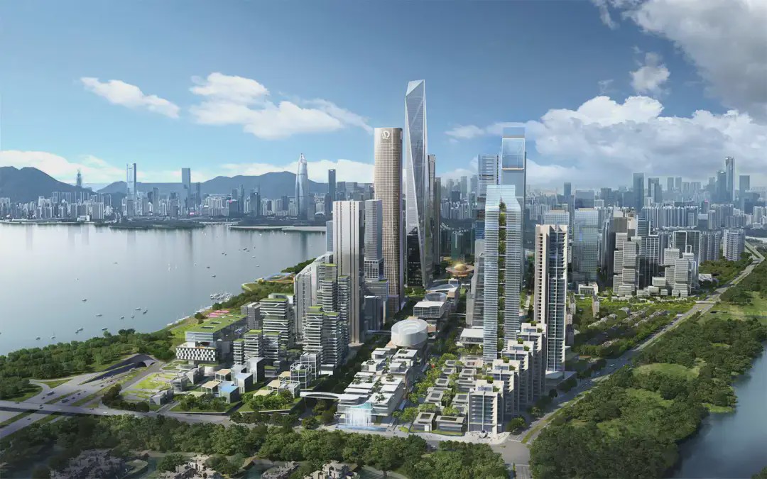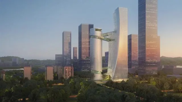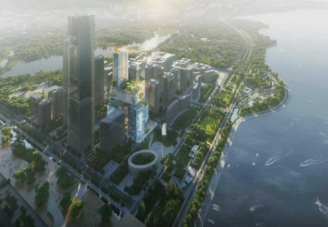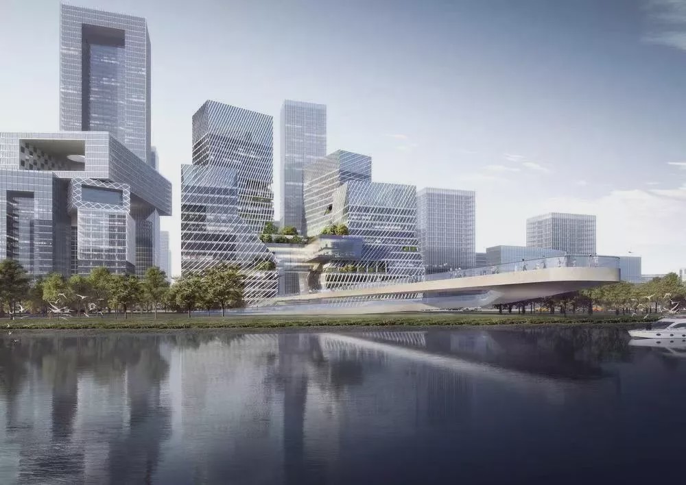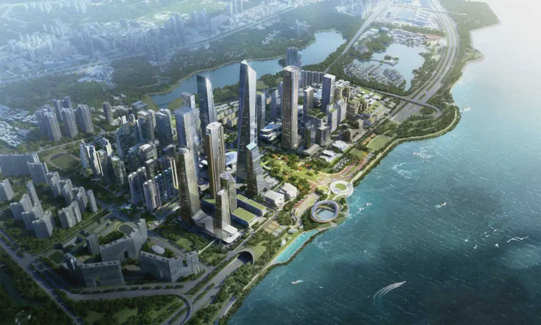总体规划命名为深圳湾超级总部,旨在滨水地带创建一个新的区域,建成后将成为中国东南部地区的新中心。该区域将设立三座标志性塔楼,以吸引各大公司将总部迁往此处。