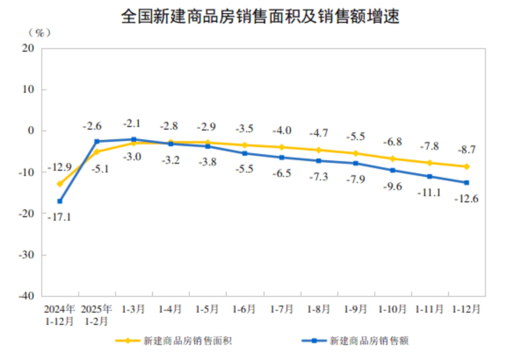 国家统计局发布公告,2025年全国房地产开发投资82788亿元,比上年下降17.2%;其中,住宅投资63514亿元,下降16.3%。