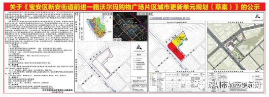 宝安区新安街道前进一路沃尔玛购物广场片区城市更新单元已列入《2018年深圳市宝安区城市更新单元第四批计划》,现该更新单元规划(草案)已经过宝安区城市更新工作委员会审议。