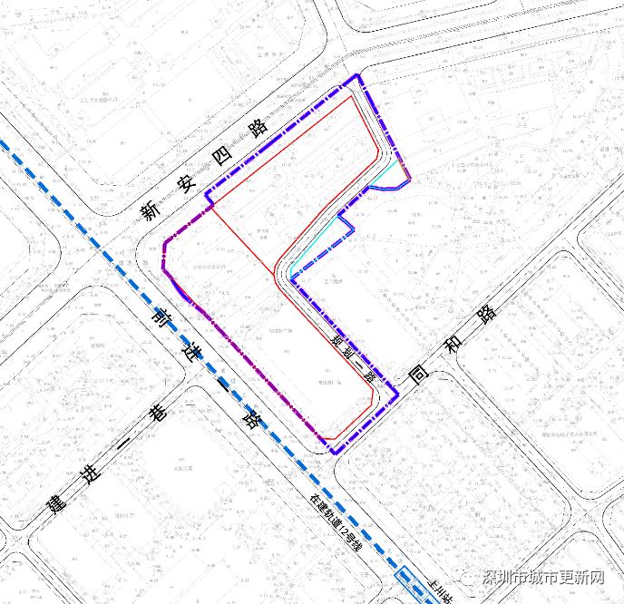 该项目位于深圳市宝安区新安街道前进一路与新安四路交汇处东南侧,周边已经聚集了商业、医疗、公园、教育等各项资源。更新单元用地面积26539.8㎡,拆除范围用地面积26539.8㎡,开发建设用地面积19436.4㎡,规划容积168195㎡,规划容积率8.7。