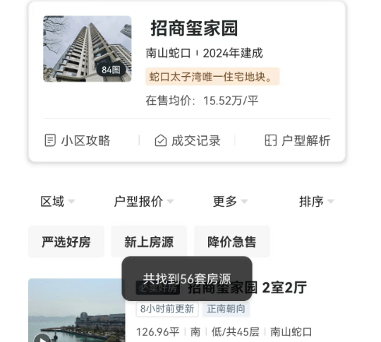 据@小鹿选房 数据,目前招商玺家园共有56套房源在挂牌。
