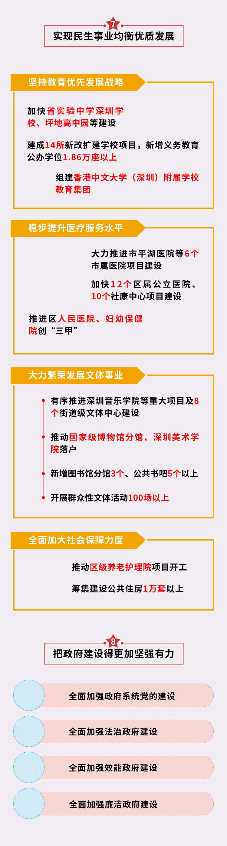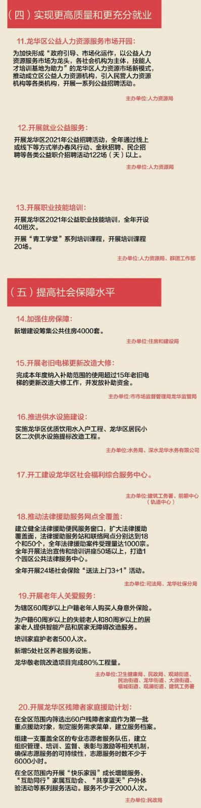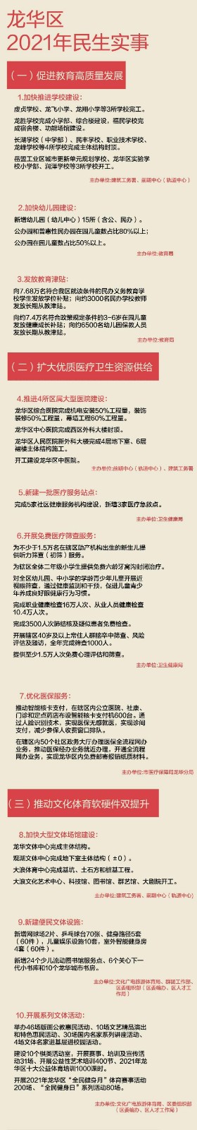 全面完成40件168项民生实事,建成7所学校,加快建设龙华区职业技术学院,新增学前教育、义务教育学生位2万个。