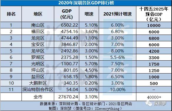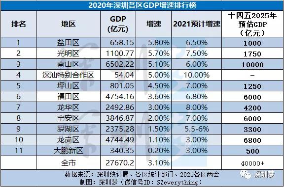 目前,随着深圳各区两会落下帷幕,10+1区的2020年GDP已披露完毕,与此同时,各区的2021年工作重点及“十四五”目标已定。