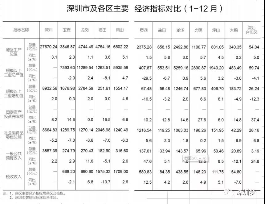 ▲宝安区统计局 深圳市及各区主要经济指标对比(2020年1-12月)