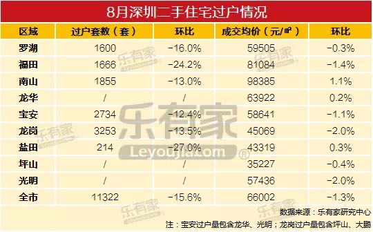 ▲8月深圳二手房过户情况 | 乐有家