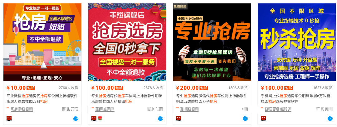 实际上,跟你一样想通过这类方式买房的不在少数。在首富家里,售卖此类抢房软件的不在少数,且这些店铺是清一色的好评。不过首富家的刷单和刷好评早已经是公开的秘密。