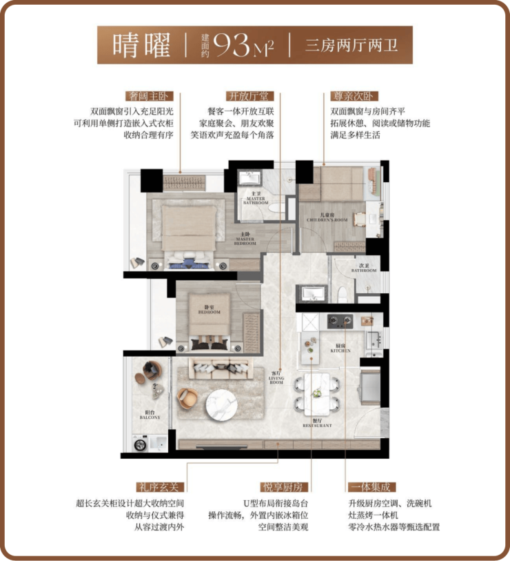 项目共提供约600多套可售商品房(不同来源数据略有差异),户型涵盖93-130㎡的三至四房。