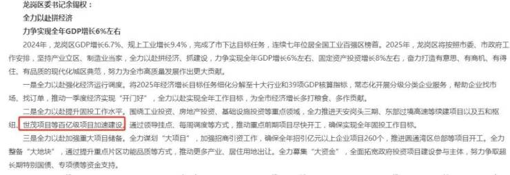 所以政府也是极度重视,在今年年初龙岗区委书记也表态,要全力推进天安岗头三期、东部过境高速等续建项目以及五和枢纽、世茂项目等百亿级项目加速建设。