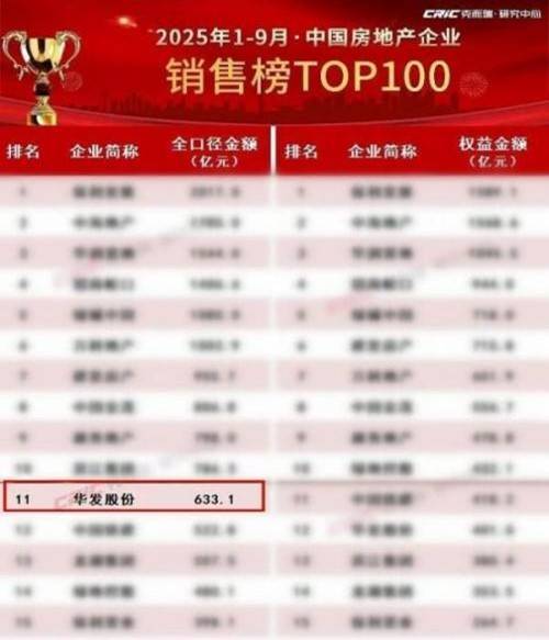 今年以来,房地产行业仍处于深度调整之中。在此背景下,华发股份始终以稳健的发展态势位居行业头部阵营,助力行业止跌回稳。克而瑞数据显示,2025年1-9月,华发股份全口径销售额达633.1亿元,位列行业第11位,操盘金额达626.3亿元,稳居行业第9位。