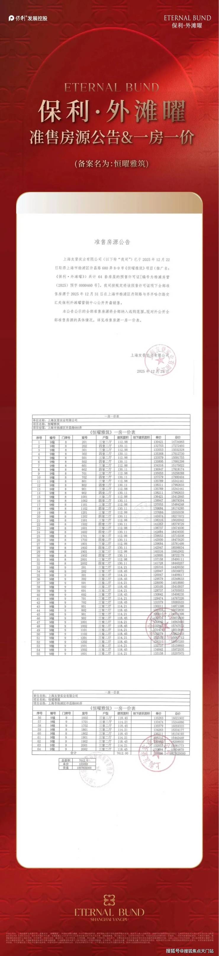 最新消息:杨浦东外滩「保利外滩曜」在售中!建面约113-130㎡三房四房,均价13.5万/㎡!