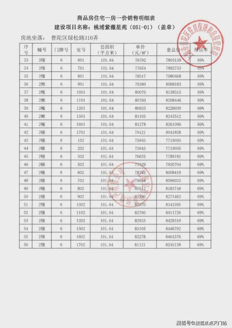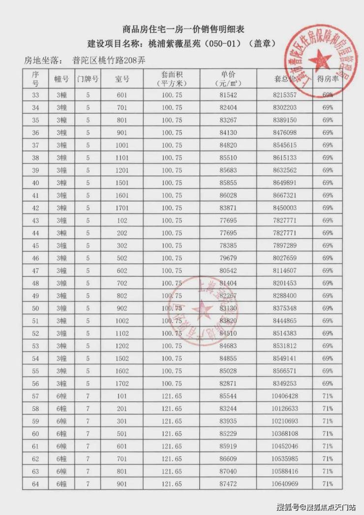 项目一房一价表▼