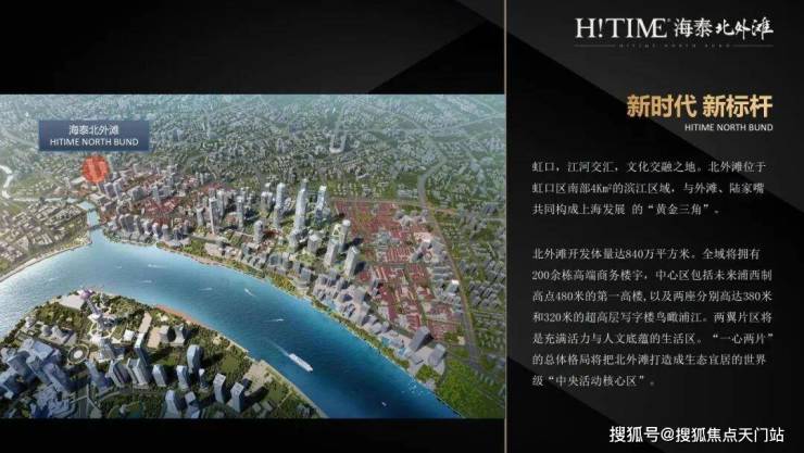 根据上海规划资源局新规划,北外滩将按照“高标准、高水平”的总体要求,以“世界级会客厅”和“具有全球影响力的世界级滨水区”为目标,与外滩、陆家嘴共同打造“黄金三角”核芯商务区的战略高地,并提出“三年出形象、五年出功能、十年基本建成”。
