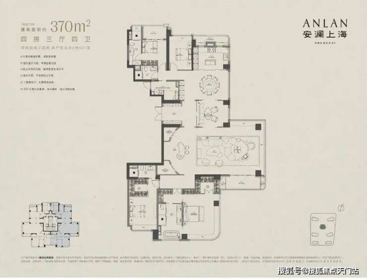 建面约370㎡4+1全景舱户型,更是将光与空间的融合做到了极致。全屋约60 米超长采光周长,以环幕级采光界面,让阳光成为空间的原生底色;约80㎡全景舱大方厅,无界贯通的空间格局,实现了家庭欢聚、圈层社交的全场景适配。三套独立全功能房设计,保障居住的私密性与尊崇感,完美适配多代同堂的家族居住需求,成为可世代传承的塔尖恒产。