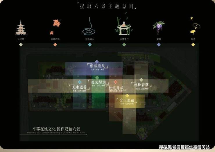 在景观的打造上,南山·璞缦汲取嘉定百年文脉人文沉淀,并以线性公园及度假式酒店为灵感,匠作 “礼序归家轴+景观漫步轴”纵横交织的双轴景观动线。