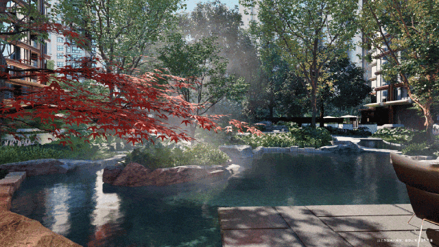 森林恒温泳池会所选用皇家毕加索、银河金等奢石装饰,将泳池筑入“都市丛林”,搭配Slow Living慢生活理念,成为业主放松身心的“家外之家”。